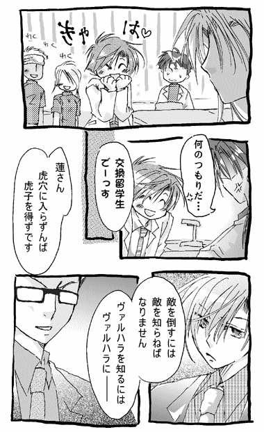 1の次の週に慌てて描いた覚えが。なんの話のつもりだったのか……テルも四宮も四瑛会に行ったんなら、蓮くんヴァルハラに行けばいいじゃない! だったような。