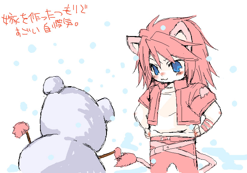 「ジみゃうみゃう!」と紹介したら、ちぃ嫁は「にぃっ、にっ(この可愛いのが俺)!?」と喜び(嫁フィルター)、バッツさんは「タヌキのゆきだるま、良くできt」でちぃ旦那の攻撃を受けるそうです…