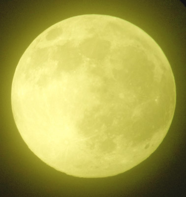 実際に見る月ってこれくらい明るいし、黄金色なんですよ。これはちょっと黄味が強いかな? 実物は、もっともっと優しくて柔らかな黄金色なんです。すっごく綺麗! 高感度設定で撮ってるけど、そんなに良いデジカメでもないから忠実に色を見せられないのが悔しいくらい、本当に綺麗です。
